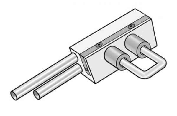Isolierwandeinbaublock für Ventil-Heizkörper, zur Montage im Trockenbaubereich mit schallgedämmten, eingeschäumten Befestigungslaschen zur Montage zwischen den Trockenbauprofilen mit der BF605T Trockenbau-Montageschine, inkl. eingelegten KELOX-Modulrohren zum einseitigen weiterführen im Wandbereich, zwischen VL und RL verbundenen CU-Rohren d15mm porenfrei metallisiert, zum nachträglichen Anschließen der Heizkörper, VL - oben Bezeichnung: links: Anschlußrohre von links rechts: Anschlußrohre von rechts Achtung! Beachten Sie die Montageanleitungen der Verschraubungshersteller, gegebenenfalls verwenden Sie für CU-Anschlüsse Stützhülsen B: 140mm, H: 80mm, T: 70mmBF600T KELOX TB-HK Winkelbox 20 li